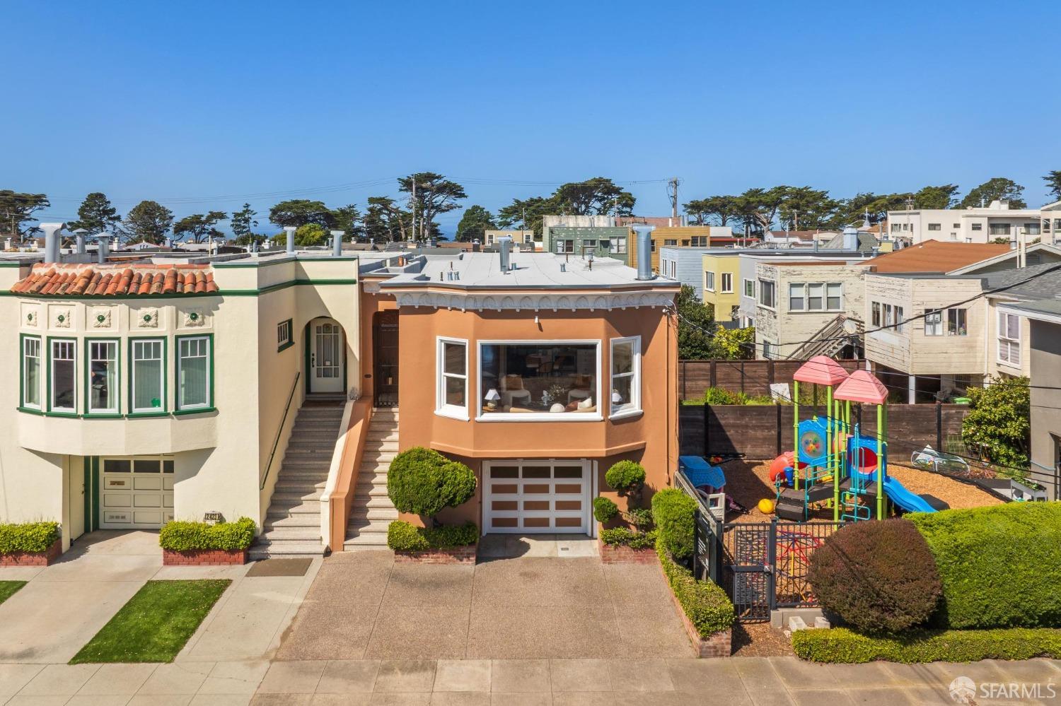 Gorgeously Updated Large Marina-Style Home in Parkside! Welcome to this beautifully updated Marina-style home, perfectly situated in the heart of the highly desirable Parkside neighborhood known for its top-rated schools and incredible convenience. This spacious 5BD/5BA home offers an abundance of natural light, an open floor plan, and a stunning backyard garden, making it an ideal retreat for modern living.The main floor features three generous bedrooms and three bathrooms, including two ensuite bedrooms. The bright and airy great room, with large windows and a gorgeous wood-burning fireplace, seamlessly flows into the spacious kitchen, perfect for entertaining. A dedicated laundry/pantry room adds extra convenience. Enjoy serene views of the expansive, lush backyard garden, an oasis for relaxation and outdoor gatherings. The street level offers a versatile layout, featuring two additional bedrooms, two bathrooms, a family room with a wet bar, and a separate gym room, ideal for guests, in-laws, or a teen retreat.The home also boasts two-car parking, including a one-car garage and a deep front driveway for additional parking. Prime Parkside location, just steps from Taraval Street's MUNI, restaurants, and cafes. Don't miss this incredible opportunity!